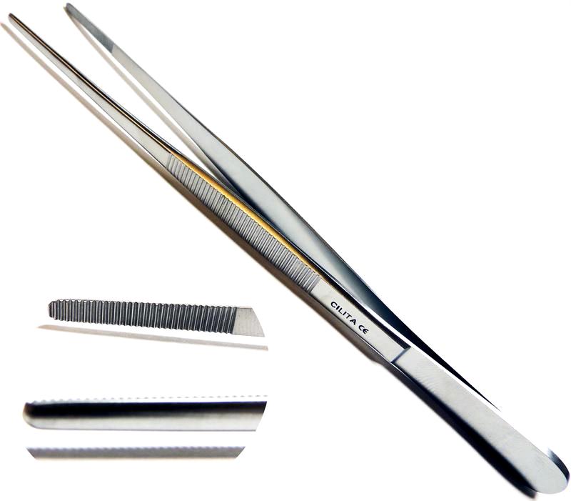 Пинцет прямой 180 мм губки длиной 23 мм, шириной 3 мм ✔
