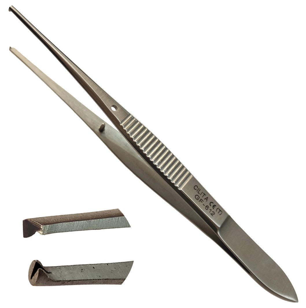 GF-612 Пинцет хирургический деликатный прямой 100 мм с зубчиками рабочая часть высотой 1,95 мм толщиной 1,25 мм