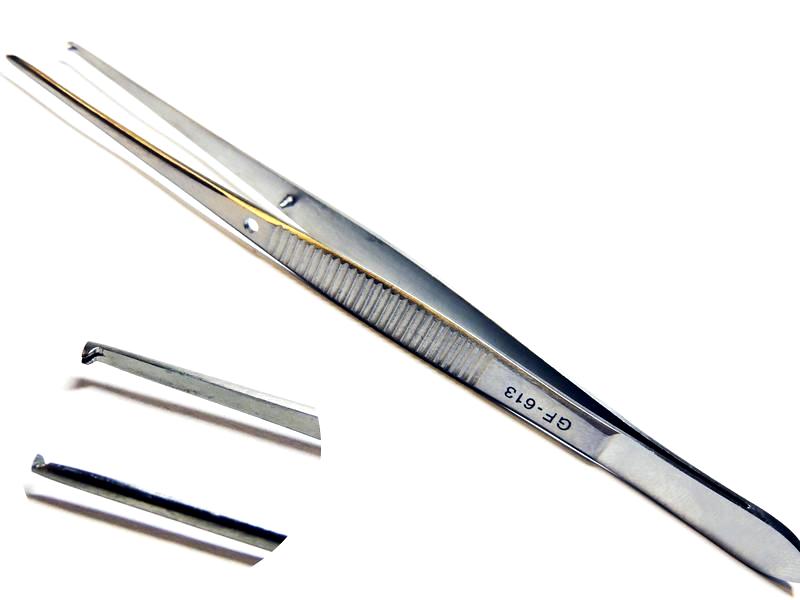 GF-613 Пинцет хирургический деликатный прямой 125 мм с зубчиками 1x2 рабочая часть высотой 2 мм шириной 1,5 мм